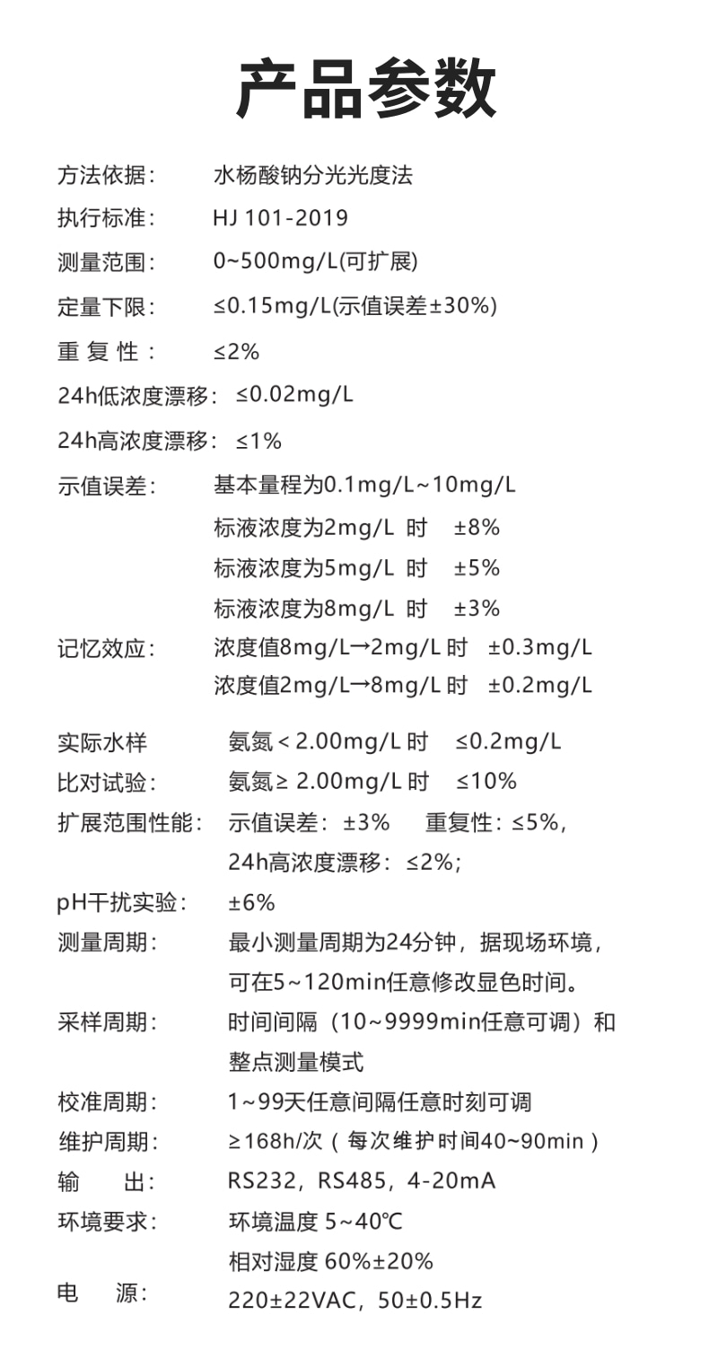 產品簡介: ·型號:CN1002A(柜式)、CN1002B (精巧型) √ 采用分光光度法,測量更精準; √ 10寸智能觸控大屏,人機界面友好; √ 自動標準樣品核查,減免人工作業(yè); √ 自動連續(xù)監(jiān)測,實時數(shù)據(jù)遠傳; √ 異常報警和斷電不會丟失數(shù)據(jù); √ 超大數(shù)據(jù)存儲,保存歷史5年以上。