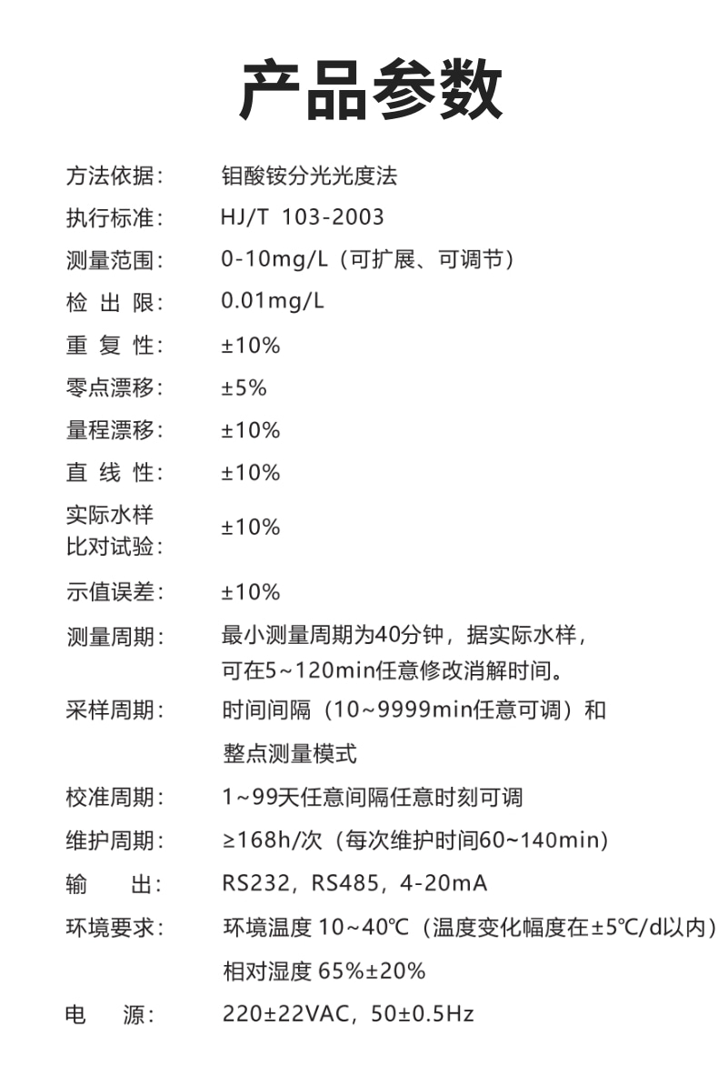 產(chǎn)品簡介: ·型號:CN1003A(柜式)、CN1003B (精巧型) √ 采用分光光度法,測量更精準(zhǔn); √ 10寸智能觸控大屏,人機界面友好; √ 自動標(biāo)準(zhǔn)樣品核查,減免人工作業(yè); √ 自動連續(xù)監(jiān)測,實時數(shù)據(jù)遠(yuǎn)傳; √ 異常報警和斷電不會丟失數(shù)據(jù); √ 超大數(shù)據(jù)存儲,保存歷史5年以上。