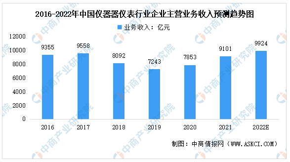 隨著節(jié)能降耗、低碳經(jīng)濟(jì)、民生產(chǎn)業(yè)、戰(zhàn)略性新興產(chǎn)業(yè)的持續(xù)發(fā)展以及國家對食品安全和環(huán)境保護(hù)的重視程度加大,為我國儀器儀表行業(yè)帶來了新的機(jī)遇。中商產(chǎn)業(yè)研究院預(yù)測,2022年我國儀器儀表行業(yè)企業(yè)主營業(yè)務(wù)收入將達(dá)9924億元。